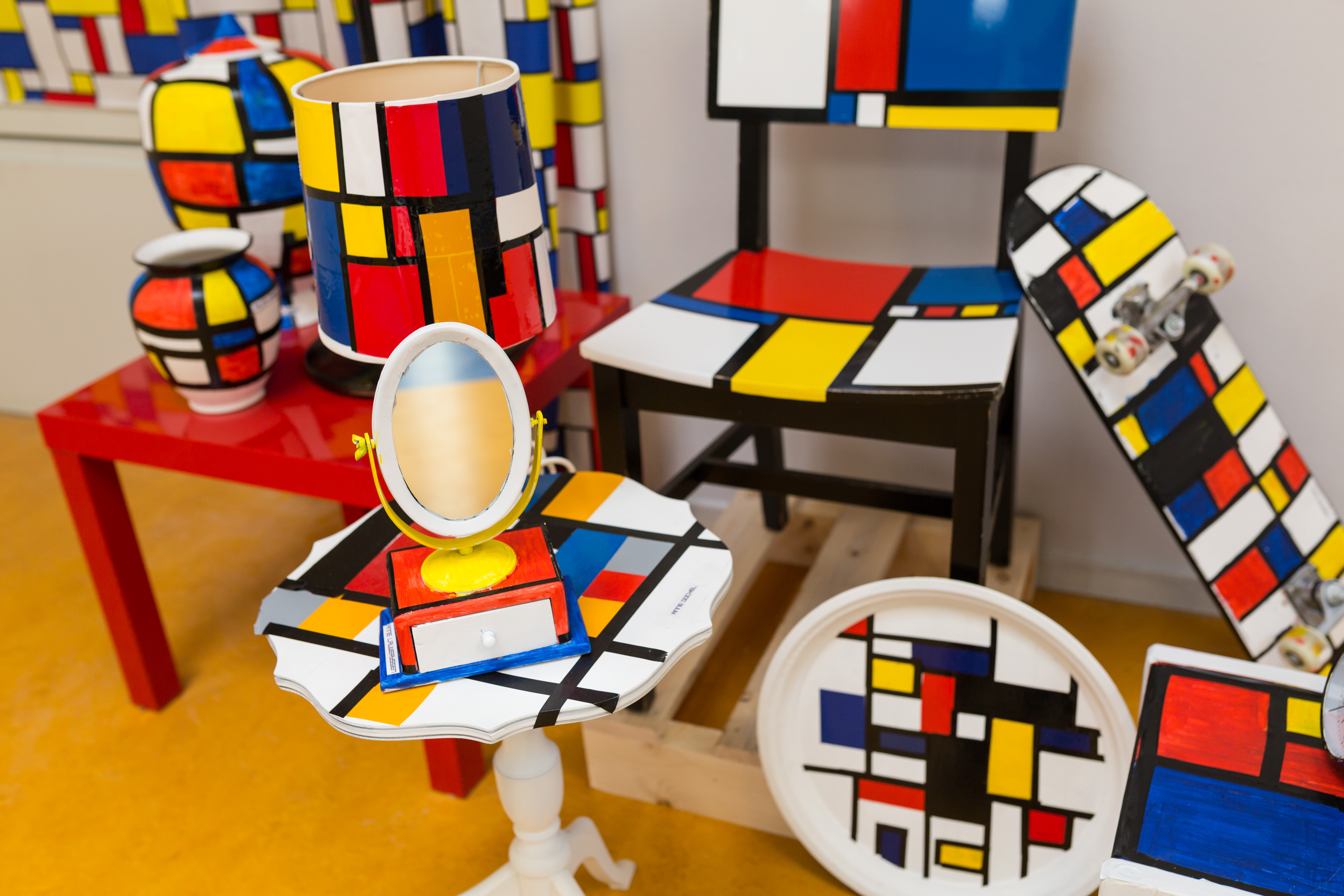Kinderen vertelden aan hun ouders wat ze gecreëerd hadden. Tijdens de opening konden realistische tekeningen die omgezet zijn naar abstracte vormen bewonderd worden. Er was een modeshow met XXL sieraden. Werken met hout en gips zorgen voor interessante schaduwwerking. De beroemde stoel van Rietveld siert in veel varianten de muur. Abstracte dieren van hout staan naast opgepimpte kringloopvondsten. Ook was er de mogelijkheid om door de digitale Stijl stad te wandelen met het programma Minecraft, kinderen ontwierpen hun eigen gebouw in de architectuur en sfeer van de Stijl.